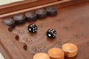 Размер доски в сложенном виде 29 на 50 см Размер доски в разложенном виде 58 на 50 см Материал нард - массив бука. Нарды, изготовленные из массива бука, раскрывают всю красоту и фактуру дерева. Внешняя сторона нард украшена резным рисунков в виде картины "Охотник на привале", автор Перов , что придает им особый шарм и изысканность. Бук – представитель лиственных пород деревьев, произрастающий в умеренных широтах Европы, Азии и Северной Америки. Бук наряду с дубом относится к ценным породам дерева. Древесина бука сходна по некоторым физико-механическим свойствам с дубовой. Имеет красивую текстуру, белую с желтовато-красным оттенком окраску. Она прочная, плотная, твердая, достаточно легко гнется, режется, обрабатывается лаками и красками. Для удобства игроков на поле нард расположены направляющие лучи, выжженные лазером. Это позволяет легко ориентироваться на доске и делает игру еще более комфортной. Эта доска соответствуют всем правилам, традициям и основным запросам любителей игры в нарды. В нардах предусмотрен дом для фишек, что позволяет хранить их в отдельном комфортном месте внутри доски. Так же это очень удобно во время игры в нарды, фишки можно складывать в дом, а не класть на стол. Деревянные фишки имеют удобные для захвата углубления по центру, что обеспечивает комфорт и надежность при игре. Также фишки можно расположить вдоль края поля, что важно при игре в длинные нарды. Материал фишек для нард - берёза или бук (в зависимости от комплектации нард) Диаметр фишек для нард 29 мм, без подклейки. Так же в комплекте 2 игральных кубика из пластика Вес нард - 3,3 кг Производитель Россия